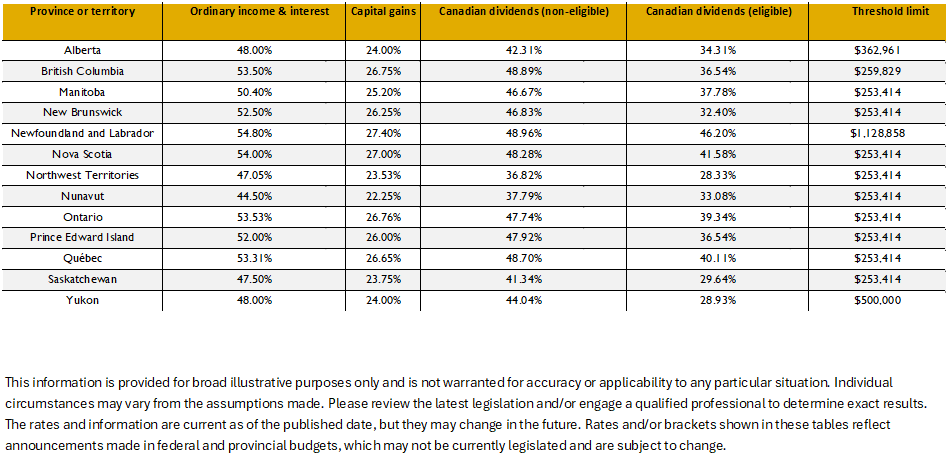 Top personal tax rates in Canada